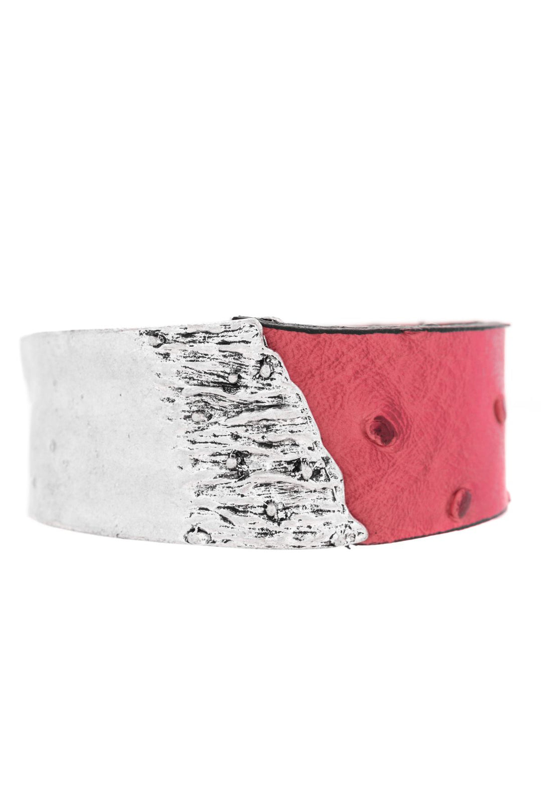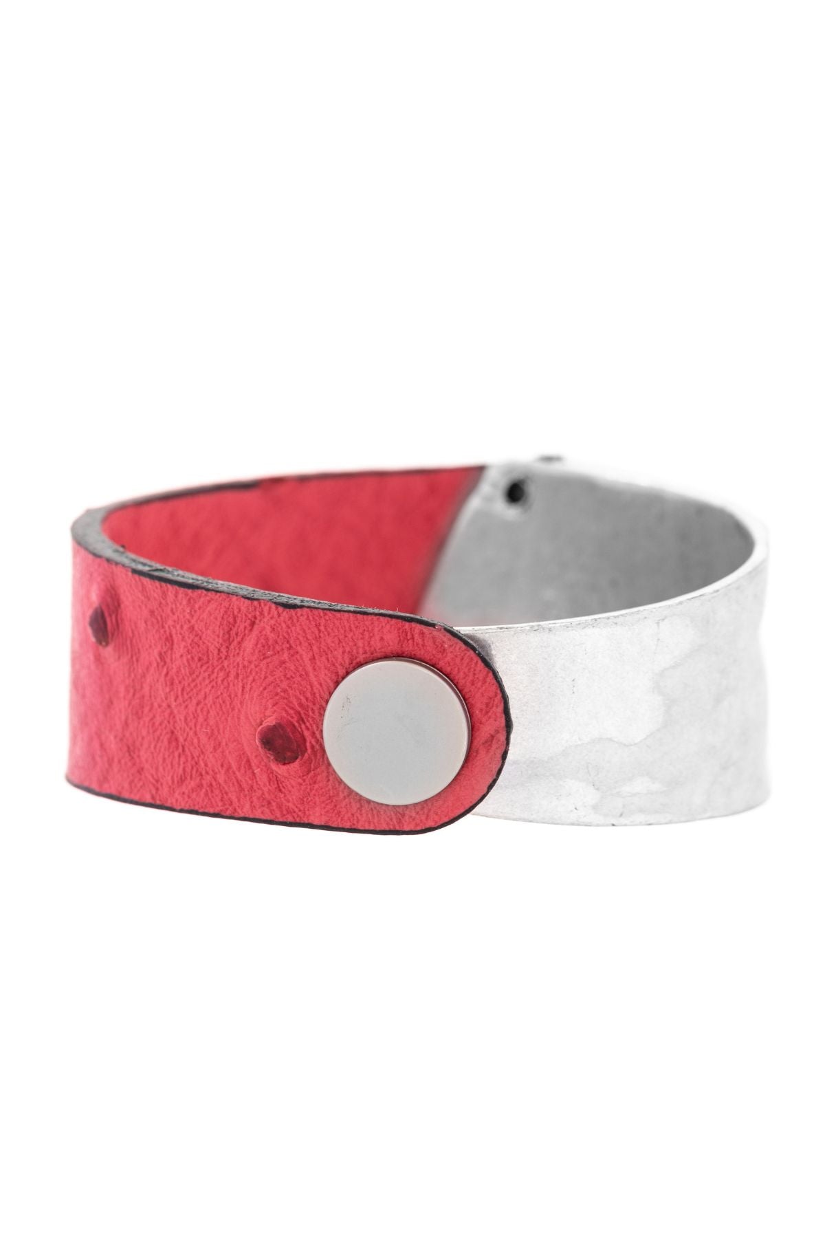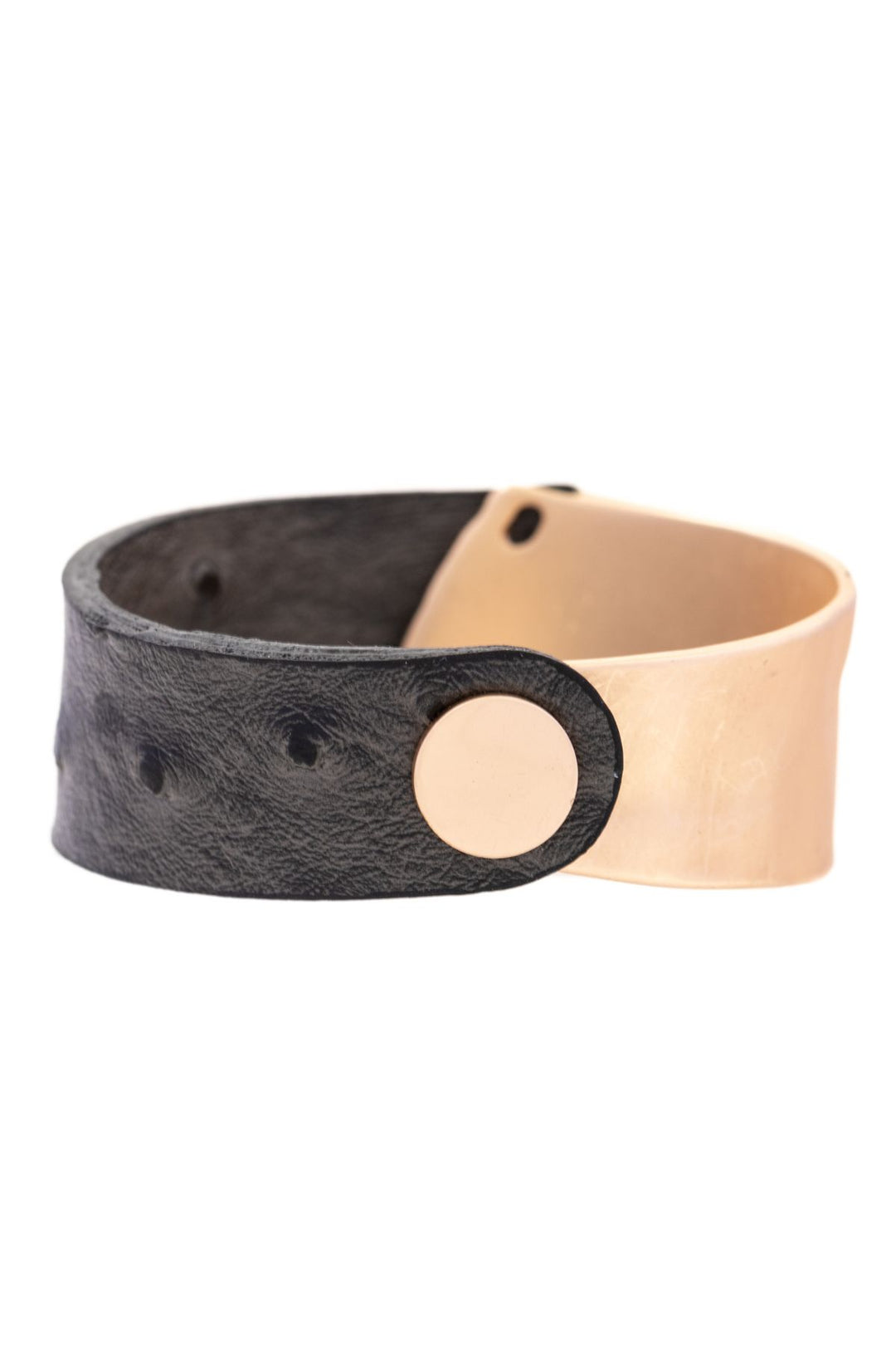 "Take a walk on the wild side with this Wild Ways Leather Bracelet. This piece features a textured soft wide leather strap beautifully embracing a matte gold wavy metal accent halfway through. Add a fashion statement to your everyday styling attire.