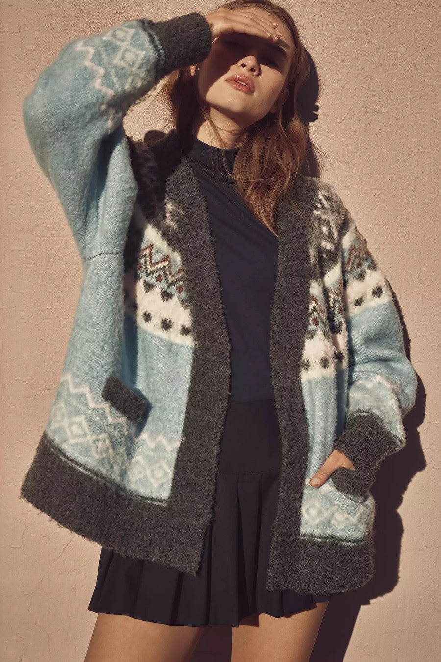 Wrap yourself in timeless elegance with our Fair Isle Cardigan Sweater. Featuring intricate Nordic-inspired patterns and soft, warm hues, it’s the perfect layering piece for cozy days. Designed with a relaxed fit and ribbed detailing, this versatile cardigan pairs beautifully with neutral tones or bold winter accessories for effortless seasonal style.