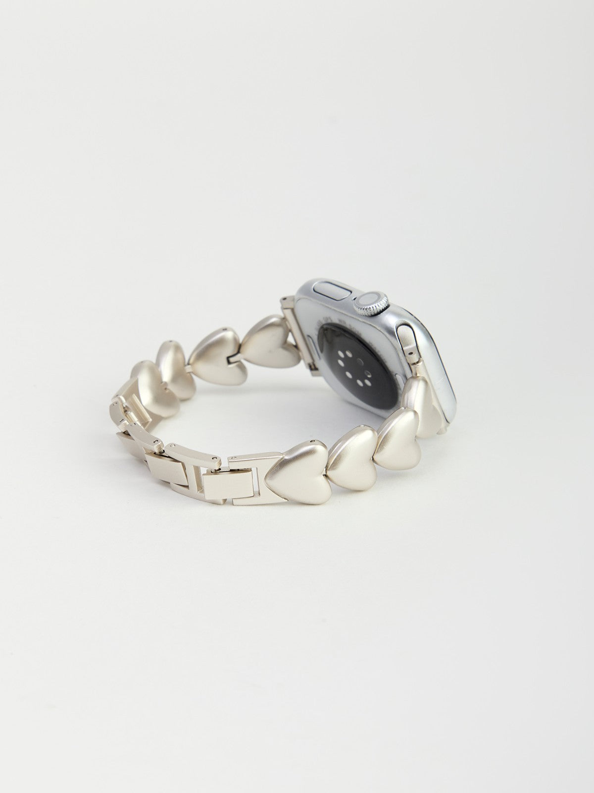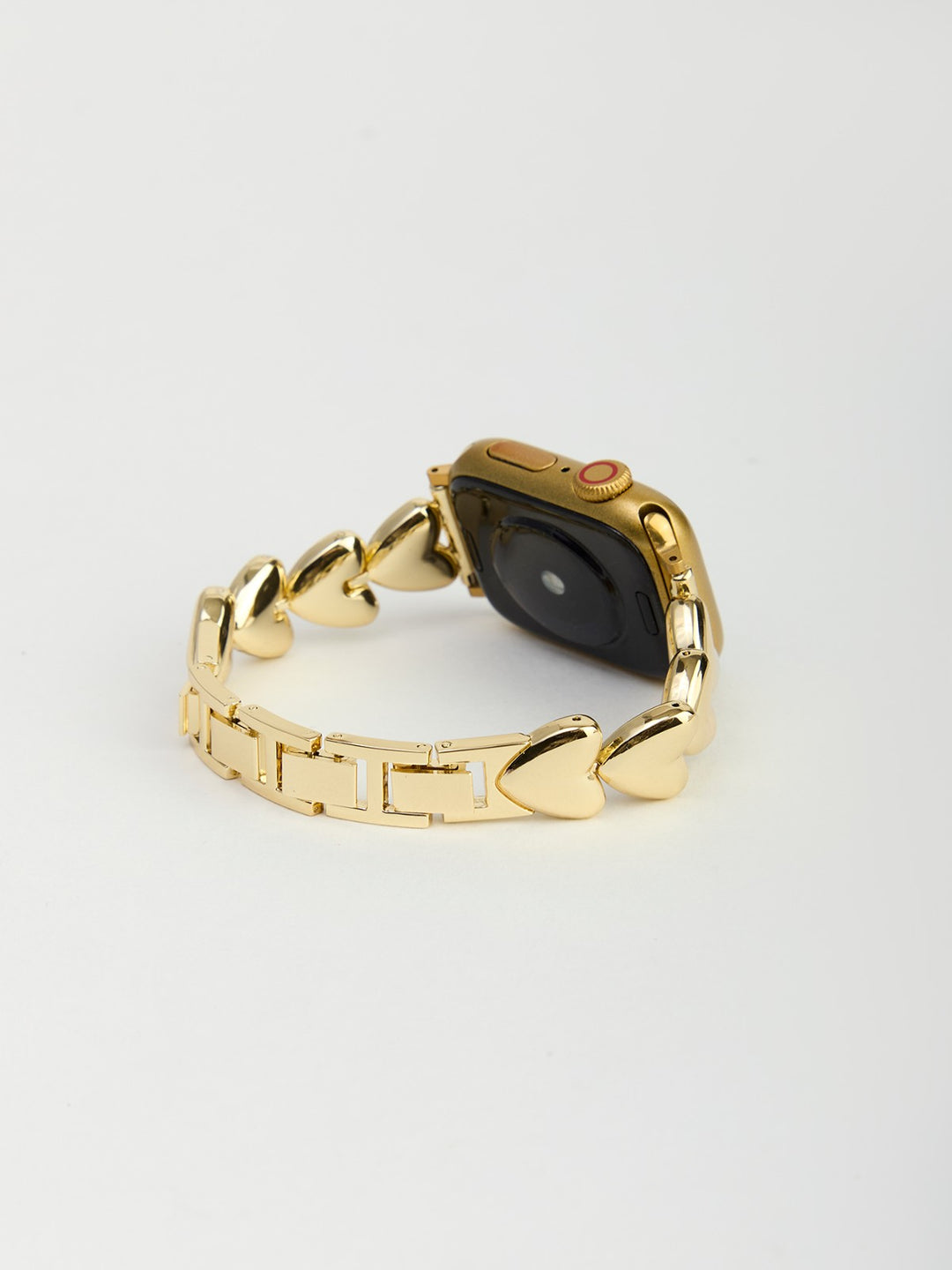 Transform your tech with our luxurious Heart Chain Apple Watch Band, featuring polished gold-toned links sculpted into elegant heart shapes. This statement band is designed with removable links for a custom fit; please see a jeweler for assistance with sizing and adjustments. Pair this glamorous band with a stack of simple gold bracelets or wear it alone for an eye-catching, refined daily accessory.