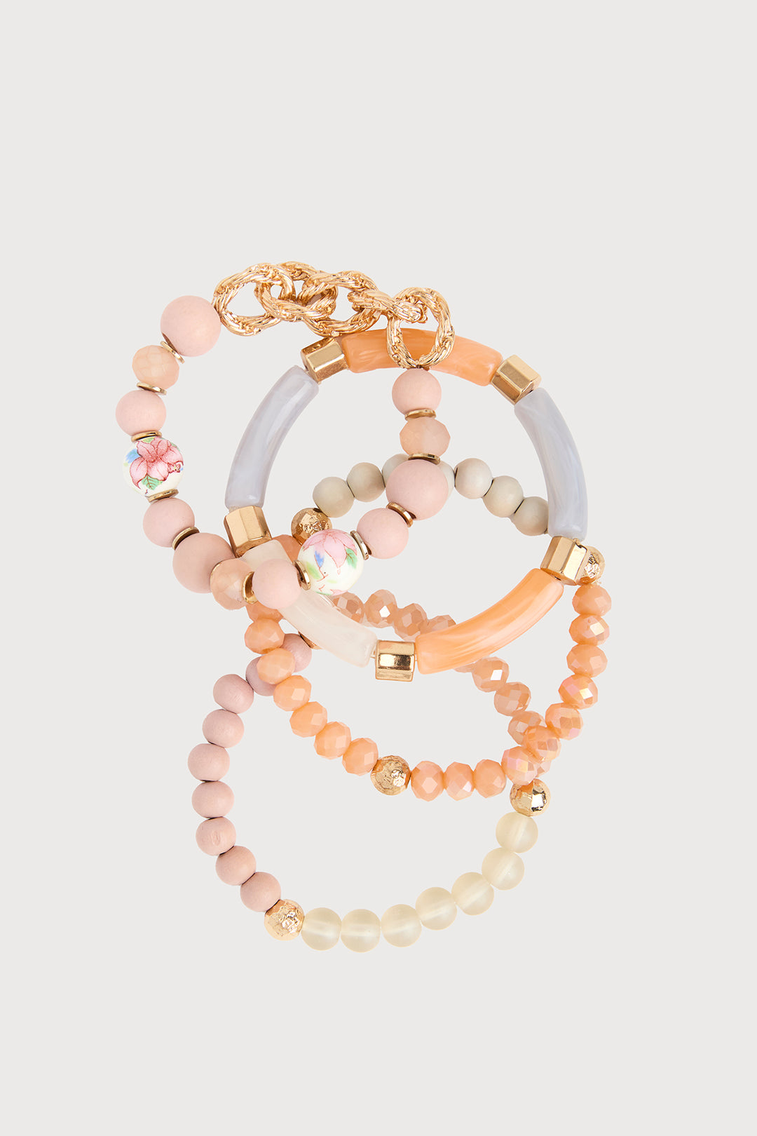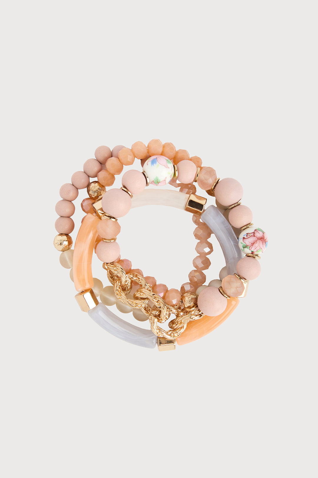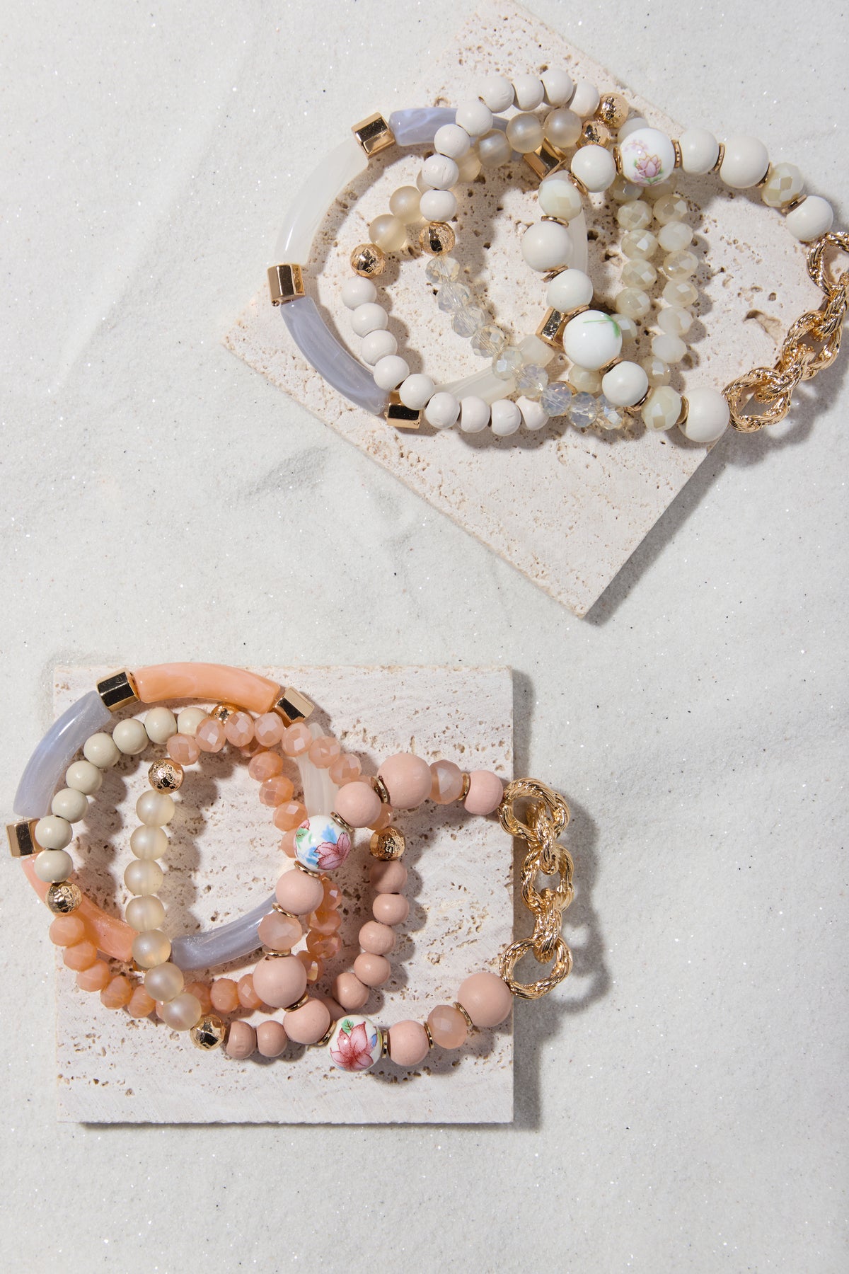 Find the bohemian dream with our Beaded Wood Chain Link Bracelet Set. Each unique bracelet combines wood, glass, and metal for a stylish, earthy look. Mix and match these four bracelets for endless styling possibilities, from minimalist to layered.
