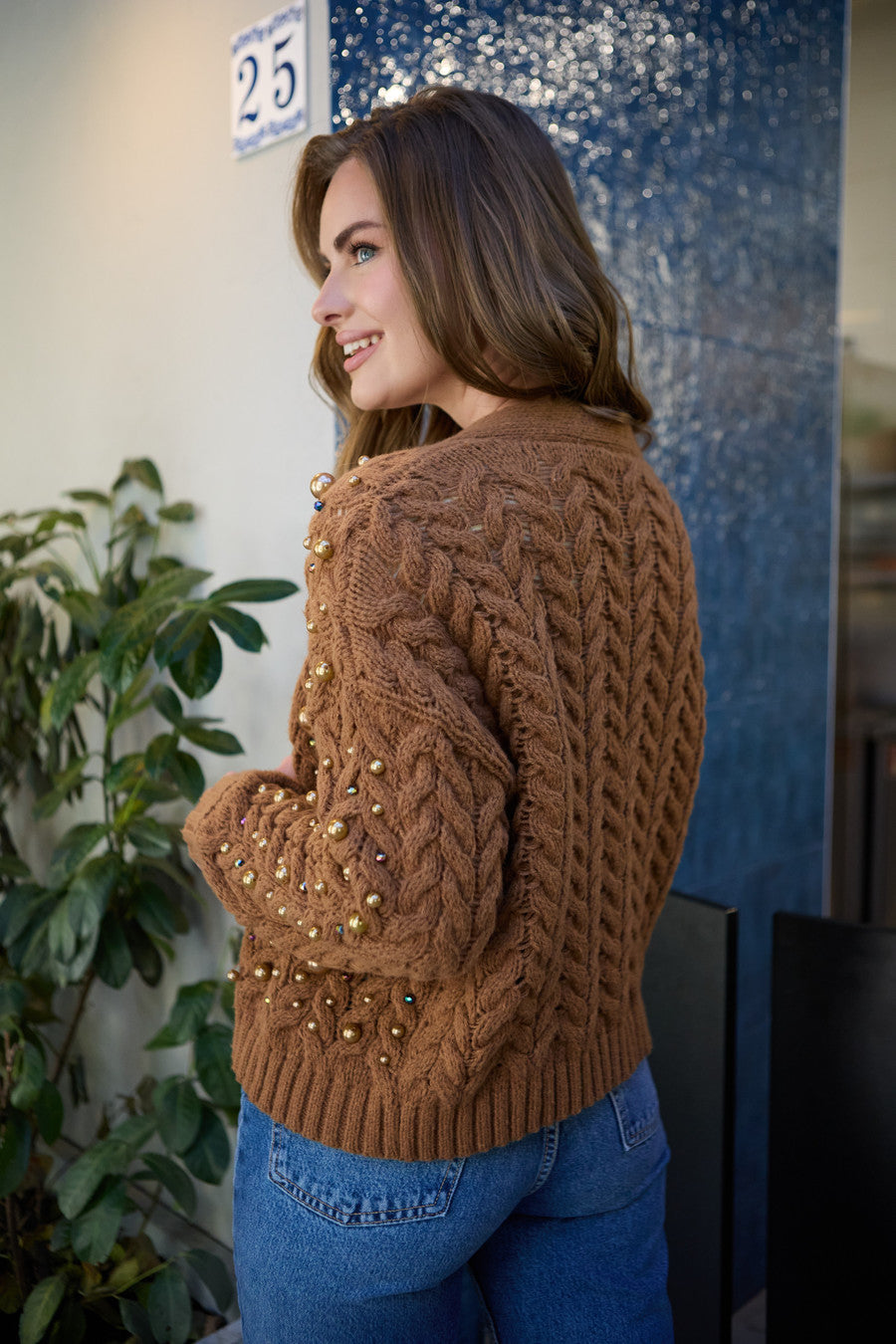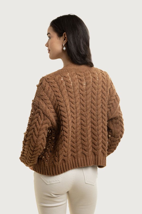 Discover our perfect holiday cardigan with pearl knit embellishments. This open-front cardigan features delicate hand-picked pearls for a touch of festive flair. The subtle sparkle makes it a versatile piece you can dress up with a dress or down with a pair of jeans for the holidays.