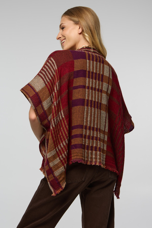 Wrap yourself in cozy style with our Crochet Trim Plaid Knit Poncho. This eye-catching poncho features a colorful plaid knit pattern and a comfortable, easy-to-layer silhouette. Delicate crochet trim accents the edges, adding a touch of artisanal detail, while functional crochet pockets provide a charming and practical element. Perfect for adding a pop of pattern and texture to any outfit, this poncho offers both warmth and distinctive style.