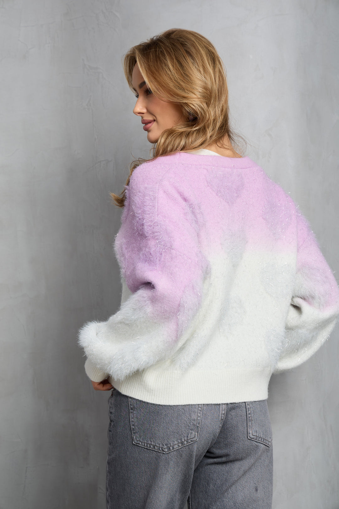 Discover our Soft Heart Ombre Cardigan, a luxe short cardigan that combines warmth and style. Featuring a stunning ombre design and plush fuzzy hearts, it offers a playful yet opulent touch with pearl buttons and ribbed details. Perfect for layering over dresses or pairing with jeans and leggings, this vibrant piece is a versatile staple for any wardrobe.