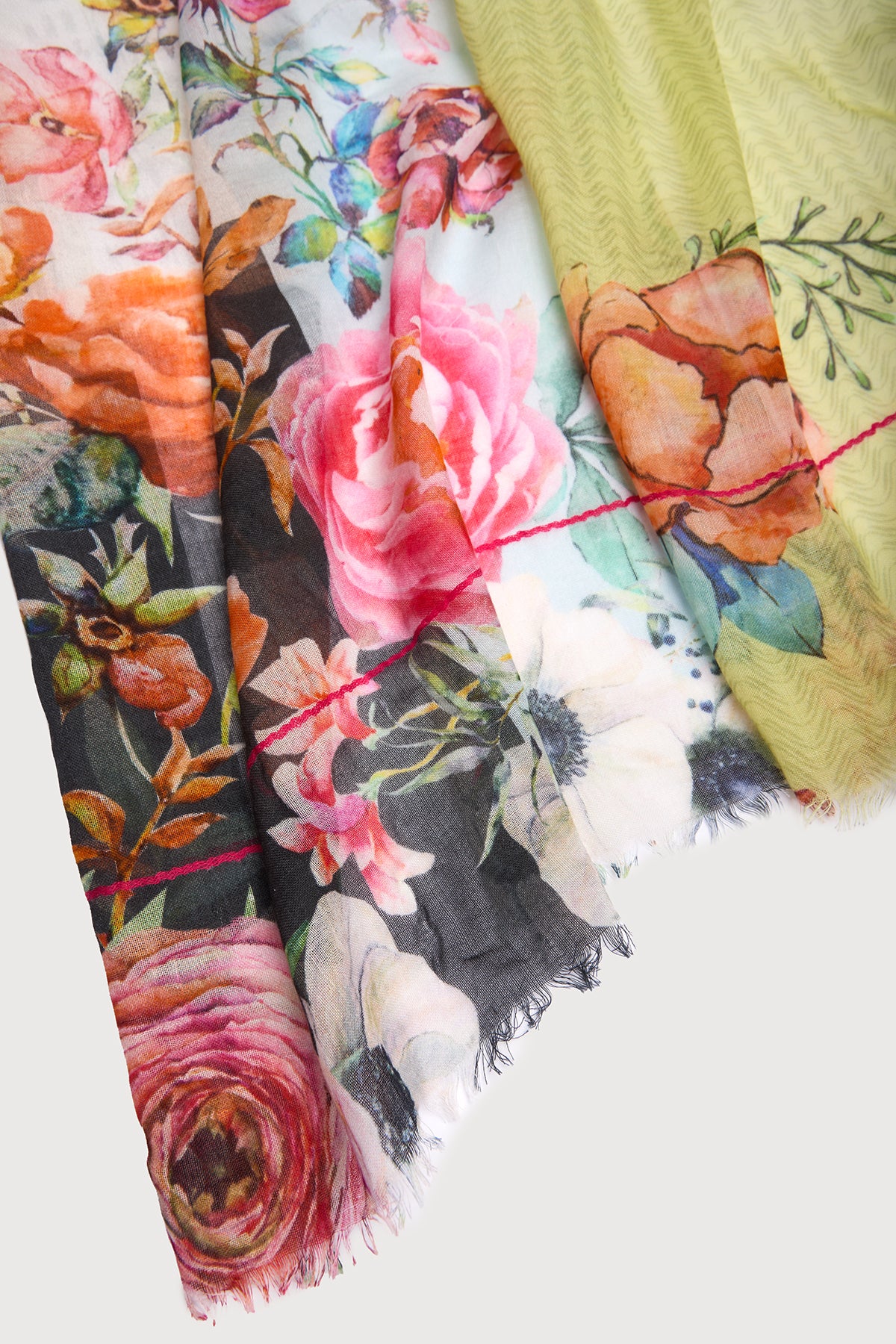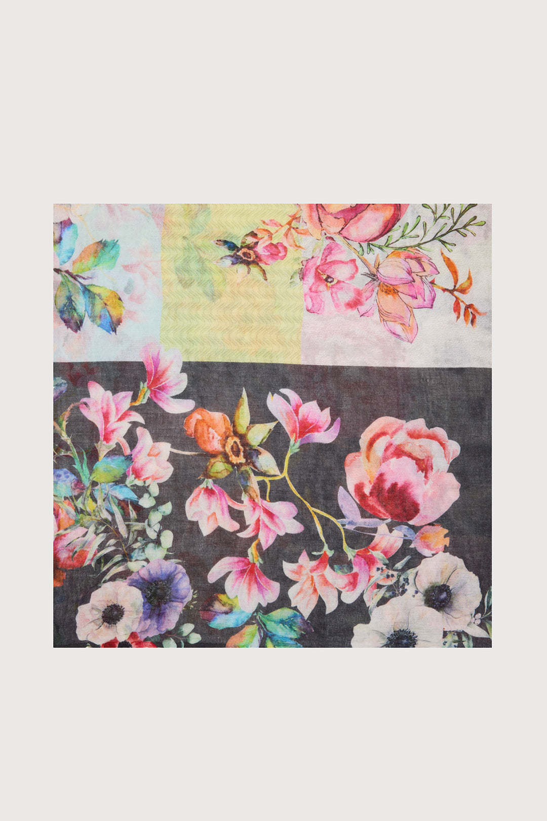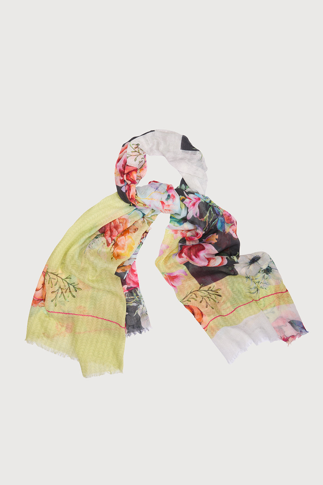 Introducing our elegant Enchanted Garden Scarf. Patterned with vibrant florals on lightweight material and finished with eyelash fringe at the hemline, it's perfect for the warmer months. Its large size makes this piece versatile and easy to style in many ways, whether headed to a summer picnic, beach day, or evening out.
