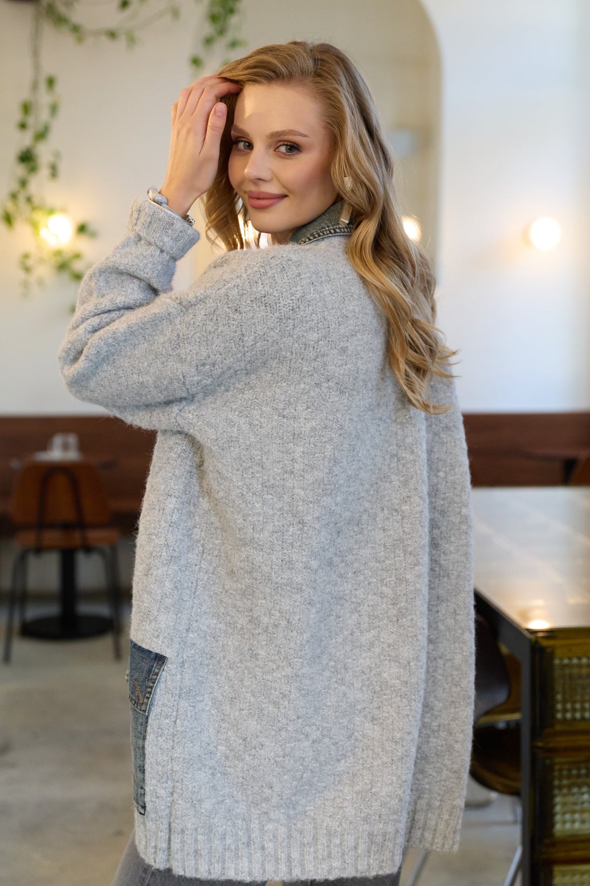Introducing our Denim Knit Cardigan, blending soft knitting with classic denim for ultimate comfort and style. Featuring two functional pockets and ribbed detailing along the hem and cuffs, this cardigan provides a flattering fit with an eye-catching texture. Ideal for weekends or evenings out, it ensures a cozy and indulgent feel.
