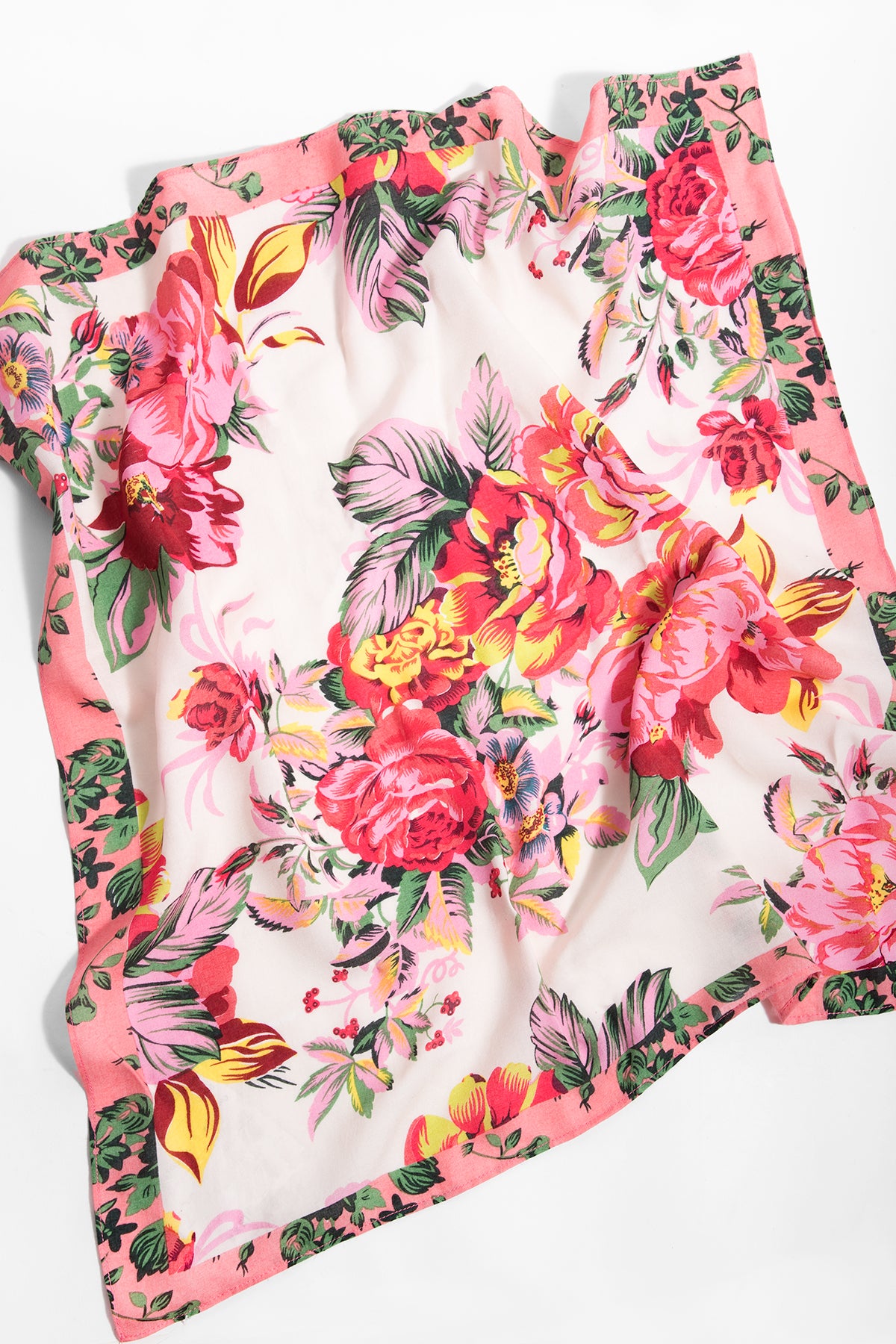 Summer's vibrant spirit is captured in our Multi Patterned Floral Bandana! This bandana boasts a lush floral print with a contrasting border, making it a versatile and unique accessory. Tie it around your face, neck, or hair for endless summer style.