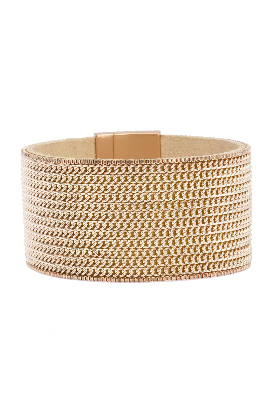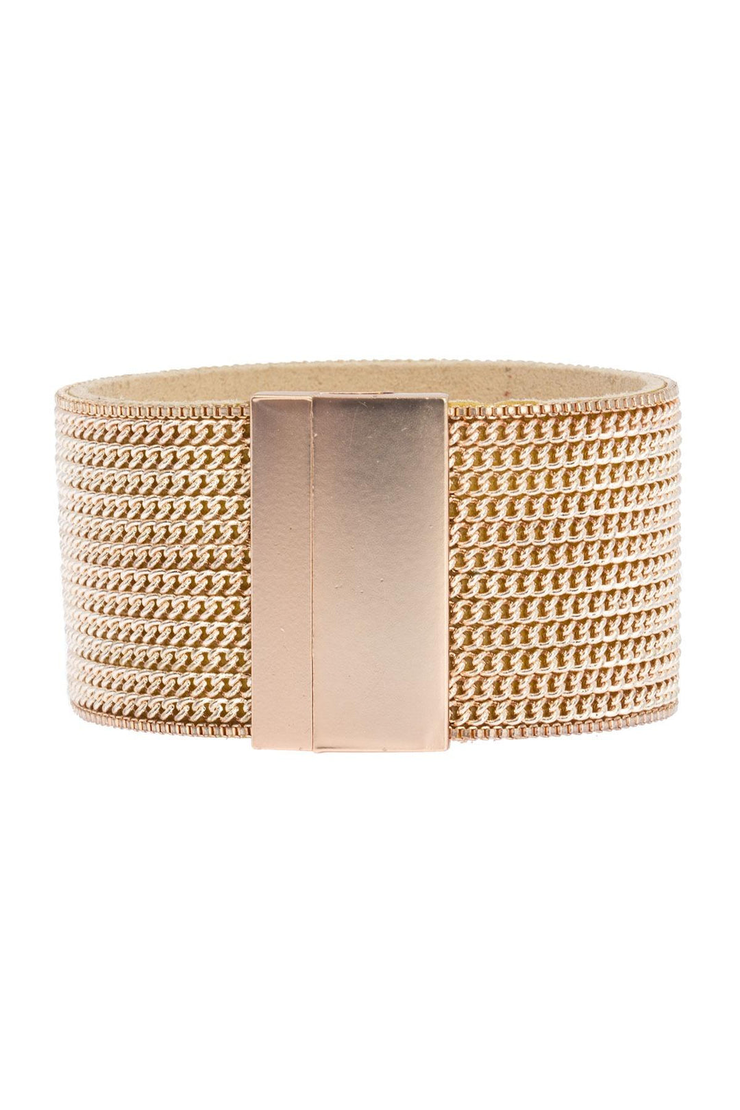 Head out to that board meeting today wearing a bold statement! Our Rockstar Leather Cuff Bracelet is a simple design composed of a wide leather band holding an array of sleek chains, finished with a magnetic clasp for easy on and off.